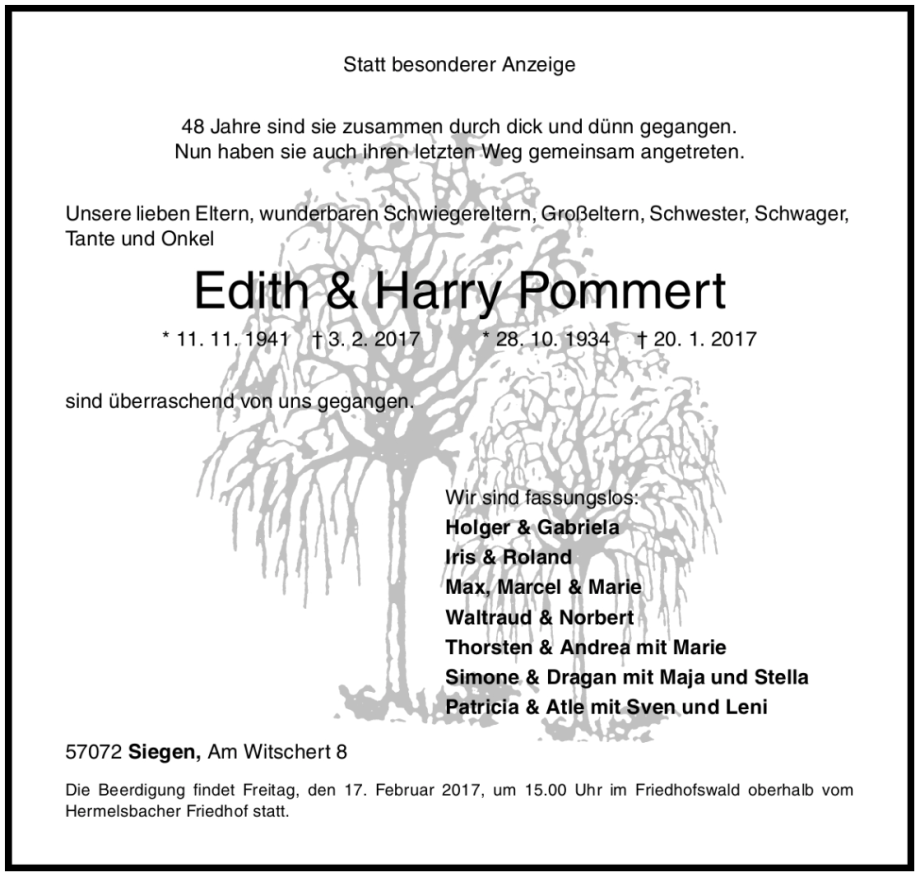 Völlig überraschend sind innerhalb von 2 Wochen unsere Eltern verstorben