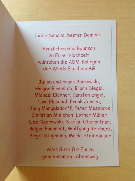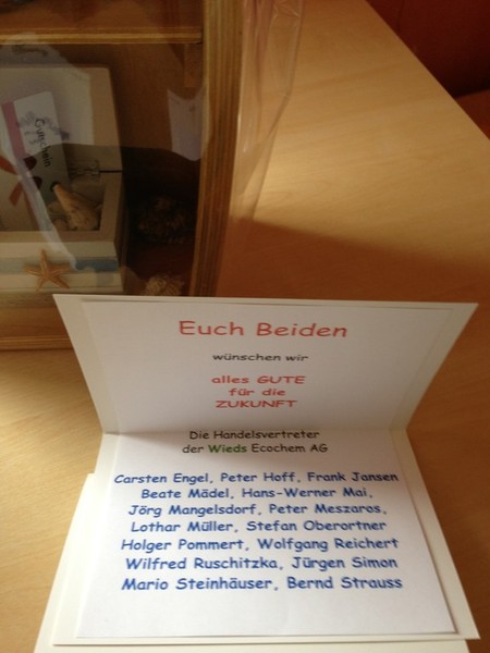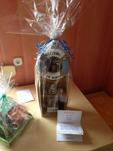 01.03.2013: Zur Hochzeit von Angie Müller und Markus Dahlhaus gab es zur glücklichen Einfahrt in den Ehehafen einen Willkommensgruß in maritimer Aufmachung, samt Gutschein von der City-Galerie hier in Siegen