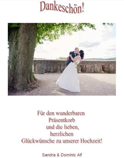 12.07.2012: Für Astrid gab es ein schönes Hochzeitskörbchen mit Raffaello´s und auch ein Gutschein der City-Galerie