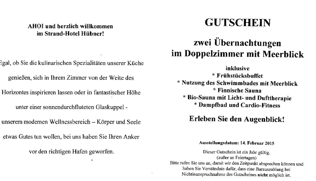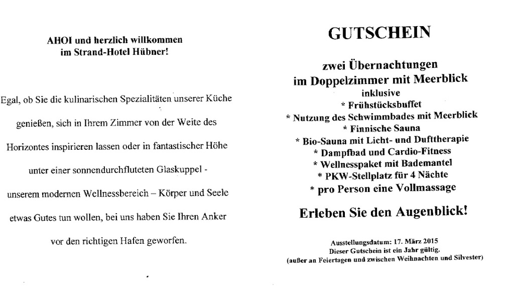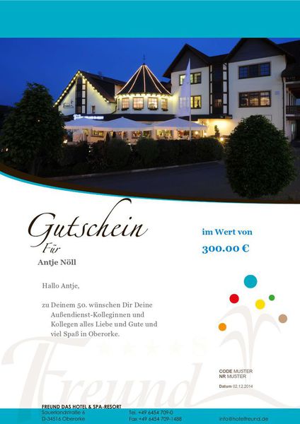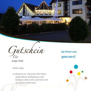 Zum 50. vom Kai (19.02.2019) haben ein paar zusammen gelegt und ein Gutschein vom Romantik Hotel Haus Platte in Attendorn ist dabei heraus gekommen: