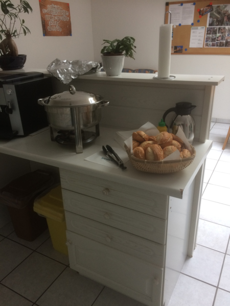 ein paar von uns haben für den Innendienst zusammen gelegt und ein kleines Dankeschön mit Fleischkäs und Getränken ausgegeben